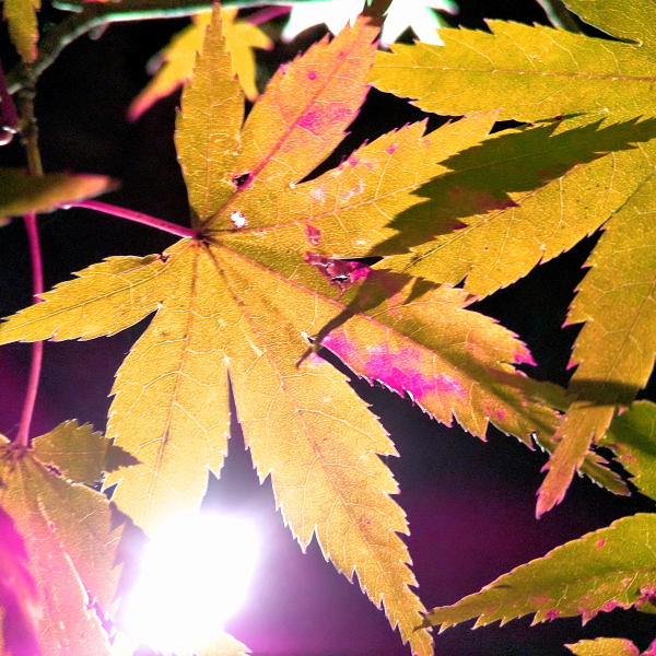 2020年、北野天満宮史跡御土居青もみじ苑にて。 所々朽ちていて、光に透ける紅葉が美しかった。