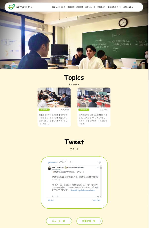 在学生の就活を応援する『就活ゼミ』のホームページが新しくなりました。最新情報がリアルタイムで反映されるなど、より情報が早く、もりだくさん!コロナ禍で頑張っている就活生、皆さんからの応援もよろしくお願いします。